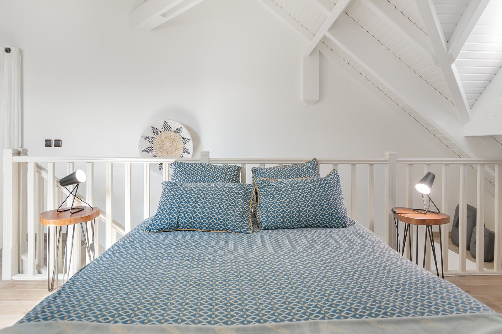 Il dispose d'une chambre avec un lit King size et une salle de bain en-suite au 1er niveau et d'une 2ème chambre semi-ouverte en loft avec lit Queen size, un coin salon avec canapé-lit et une salle de bain avec WC.