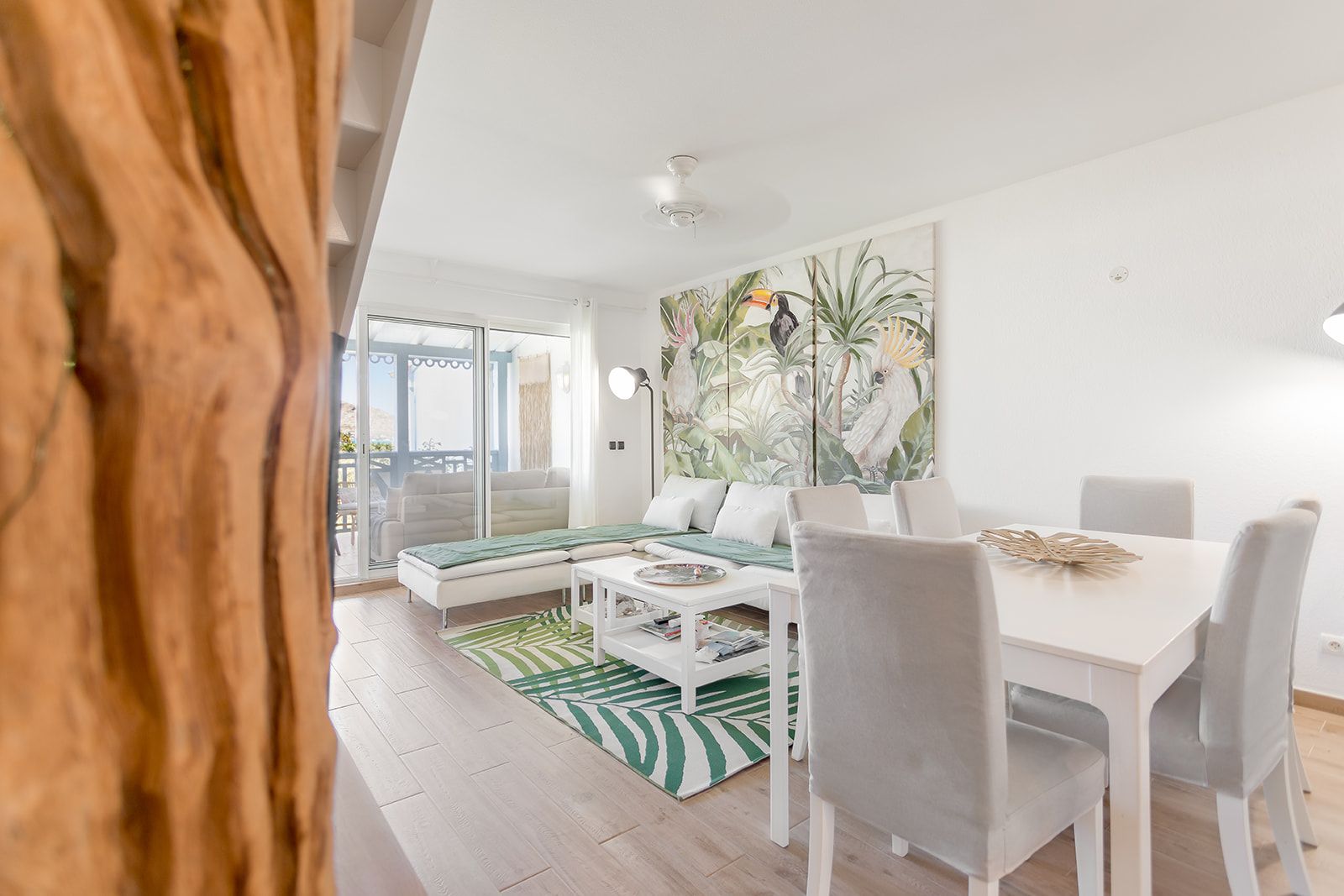 Au 1er niveau la cuisine toute équipée s'ouvre sur le salon/salle à manger décoré avec soins dans une ambiance tropicale.