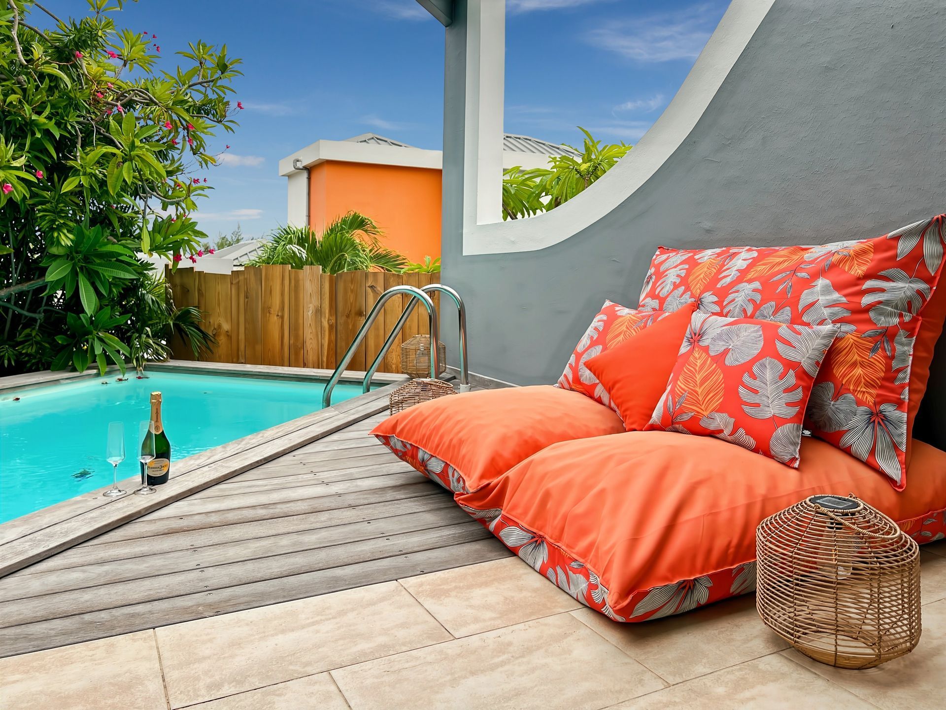 À quelques minutes seulement des plus belles plages de Saint-Martin — Orient Bay, Anse Marcel et Grand Case — cette adresse de charme séduit par son atmosphère sereine et son aménagement soigné.