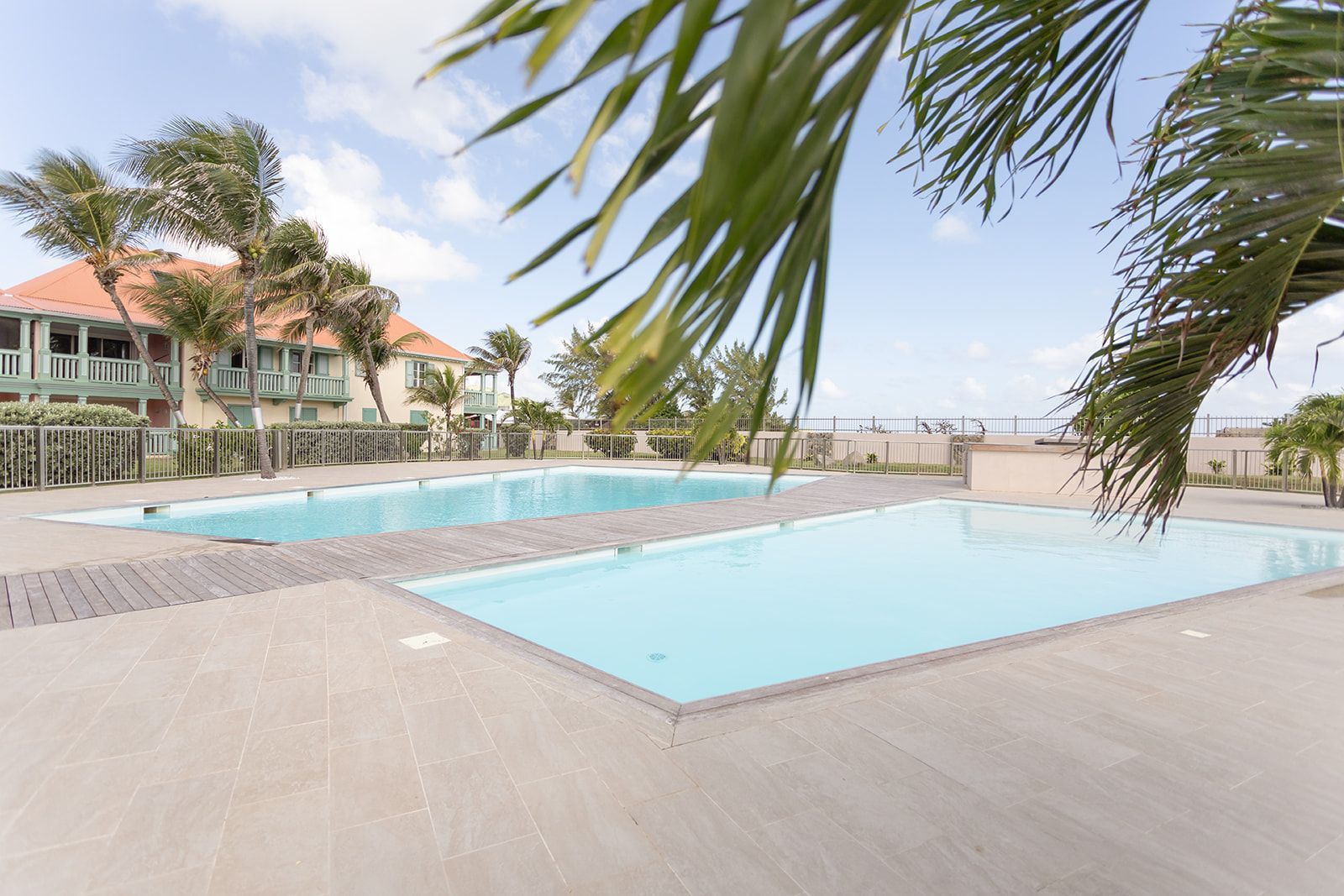 La résidence, sécurisée et bien entretenue, propose une belle piscine bordée de palmiers pour vos moments de détente.