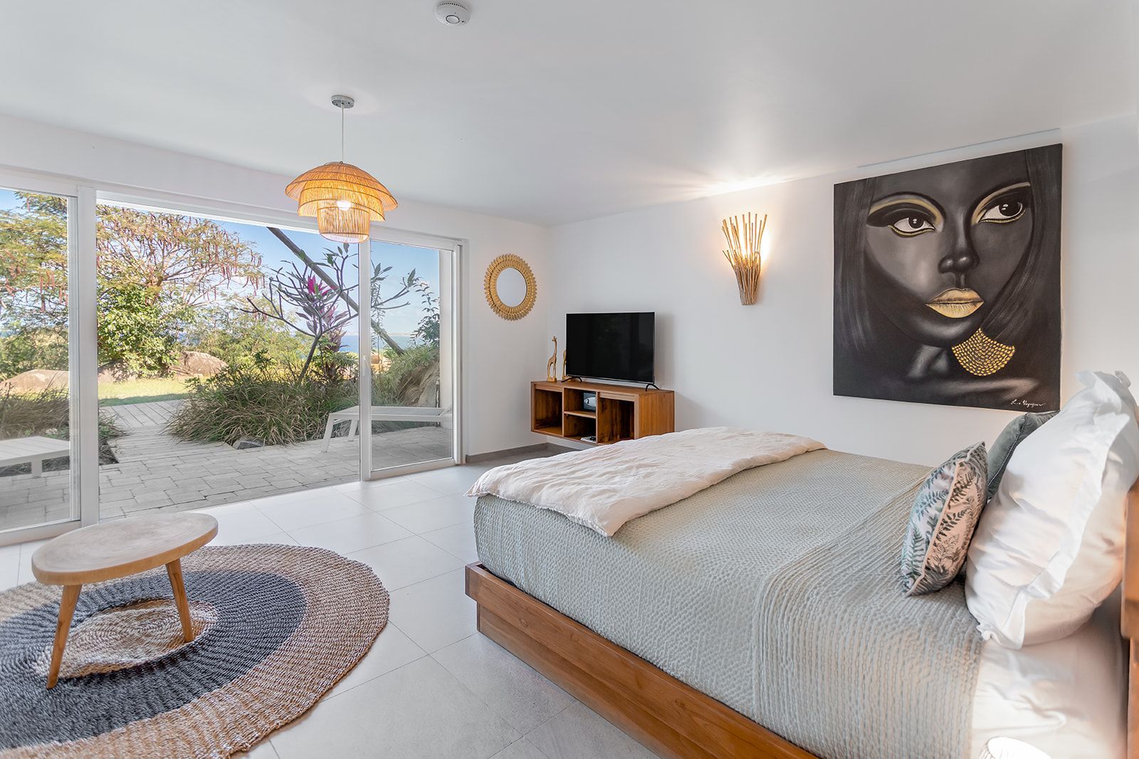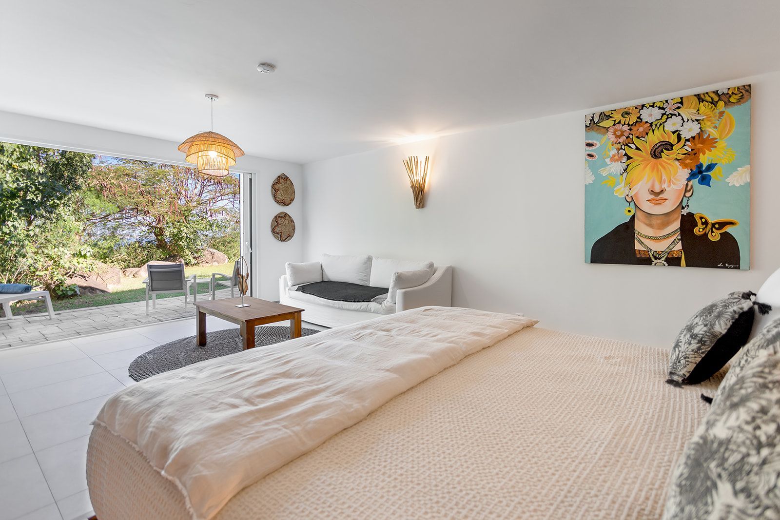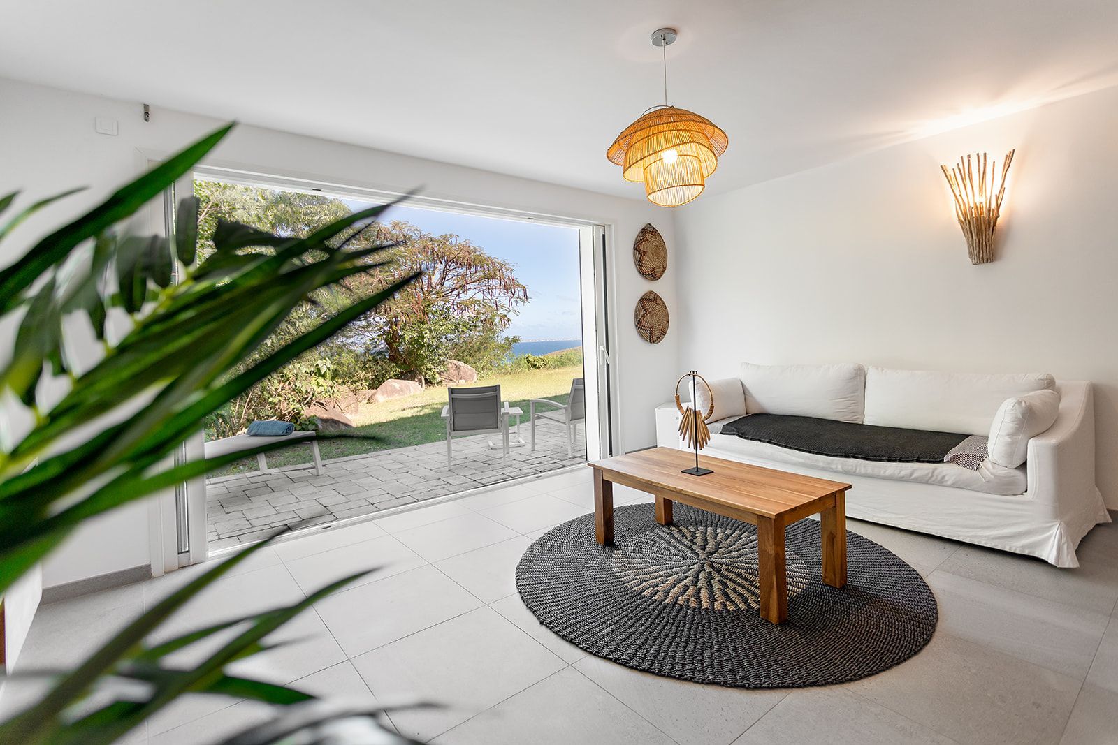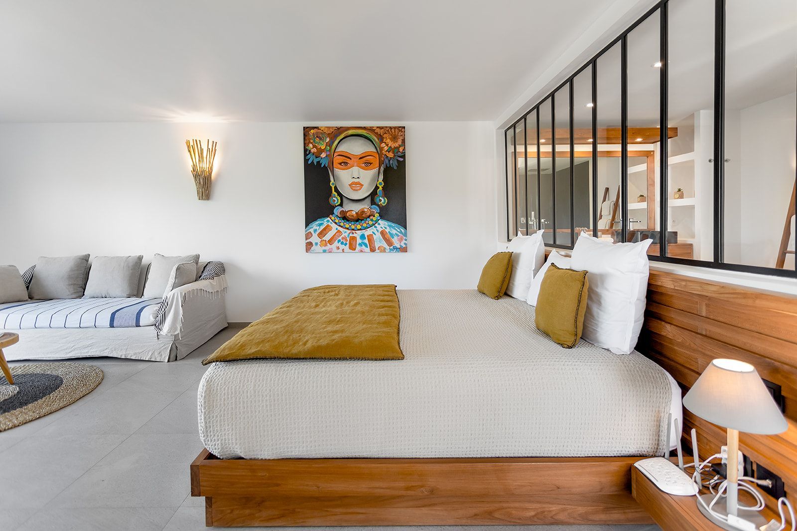 L'intérieur de la villa dévoile une décoration épurée et élégante, alliant harmonieusement modernité et charme caribéen. Les espaces de vie spacieux invitent à la détente, baignés par la lumière naturelle grâce aux larges baies vitrées offrant une vue époustouflante dès l'entrée dans la villa.