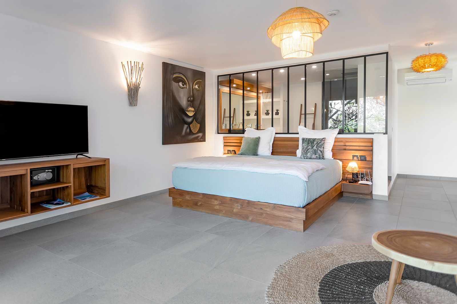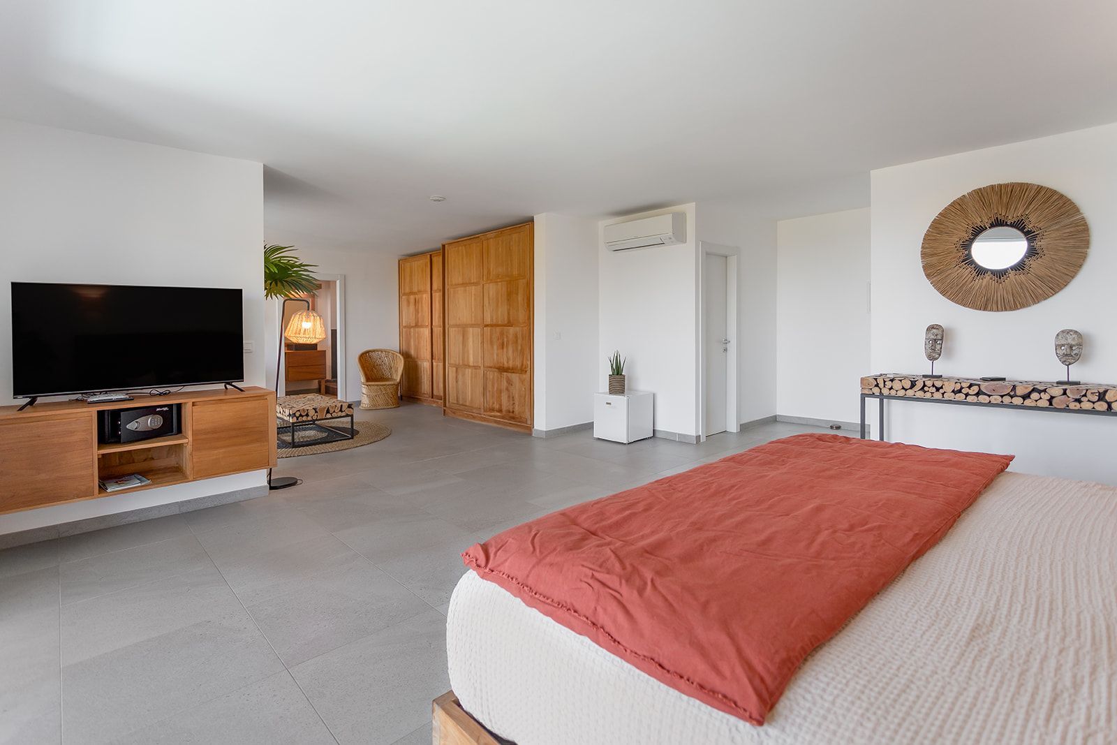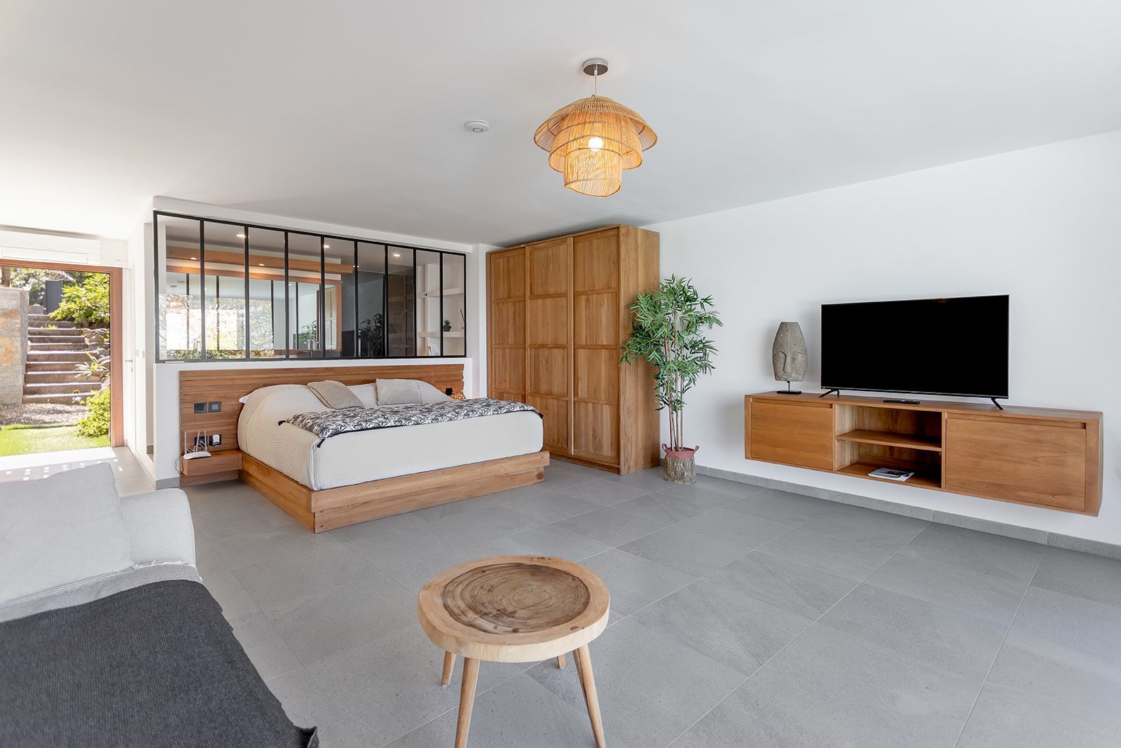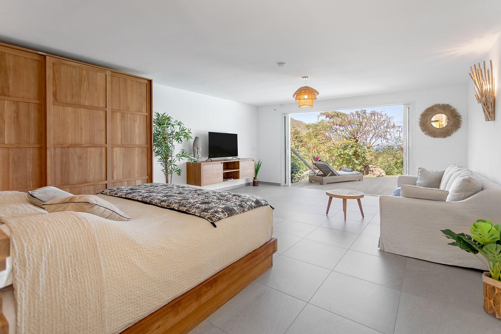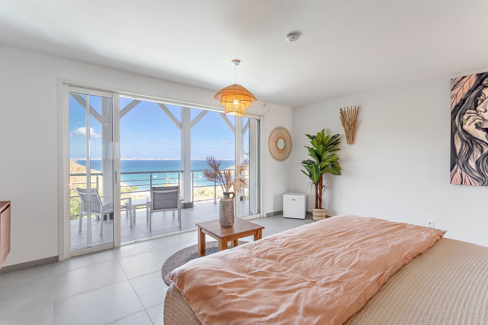 L'intérieur de la villa dévoile une décoration épurée et élégante, alliant harmonieusement modernité et charme caribéen. Les espaces de vie spacieux invitent à la détente, baignés par la lumière naturelle grâce aux larges baies vitrées offrant une vue époustouflante dès l'entrée dans la villa.