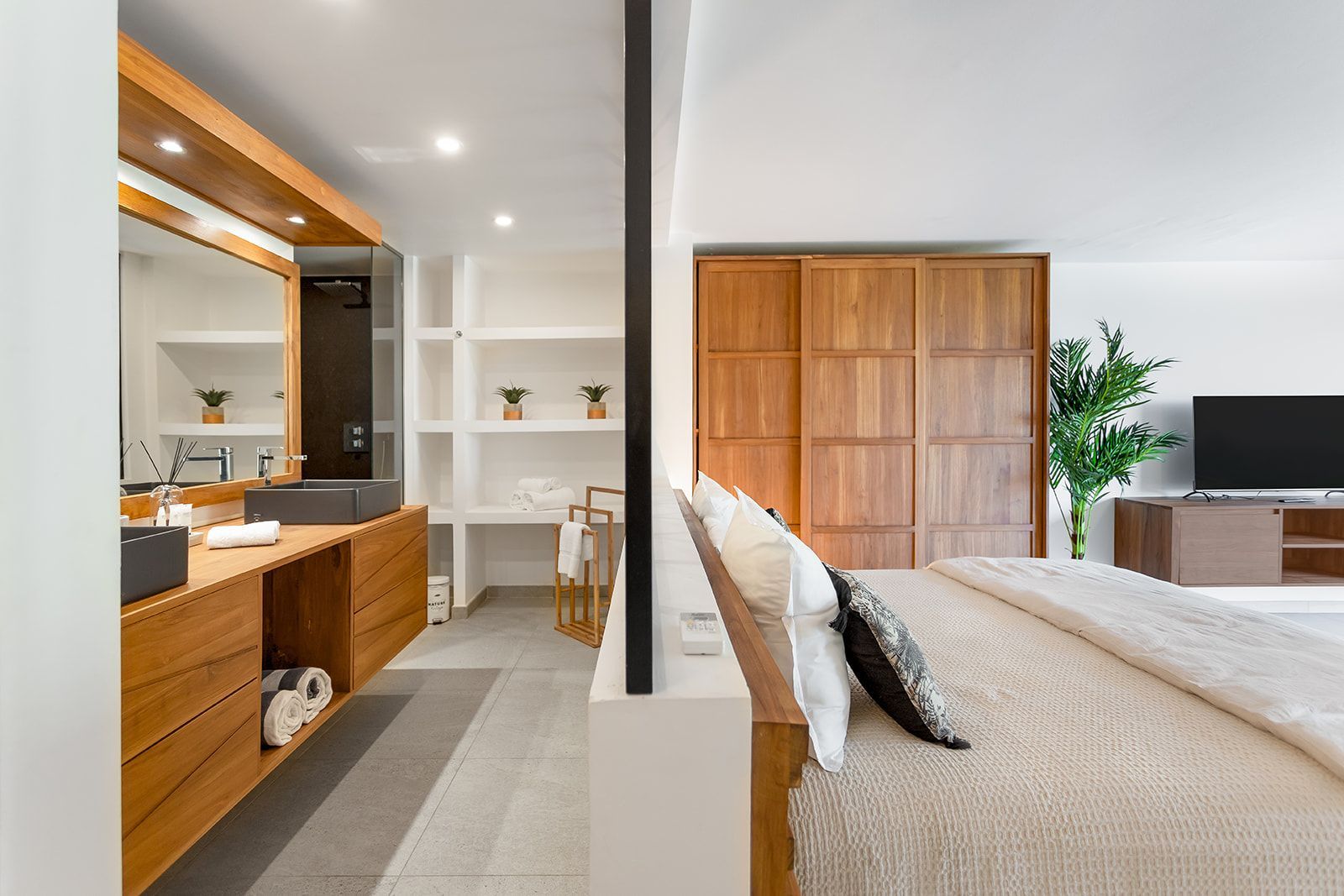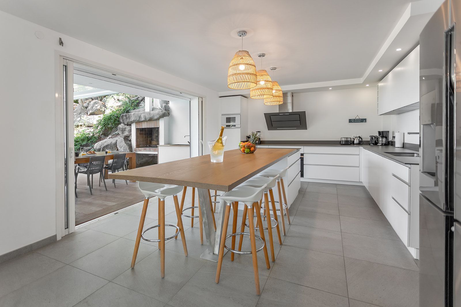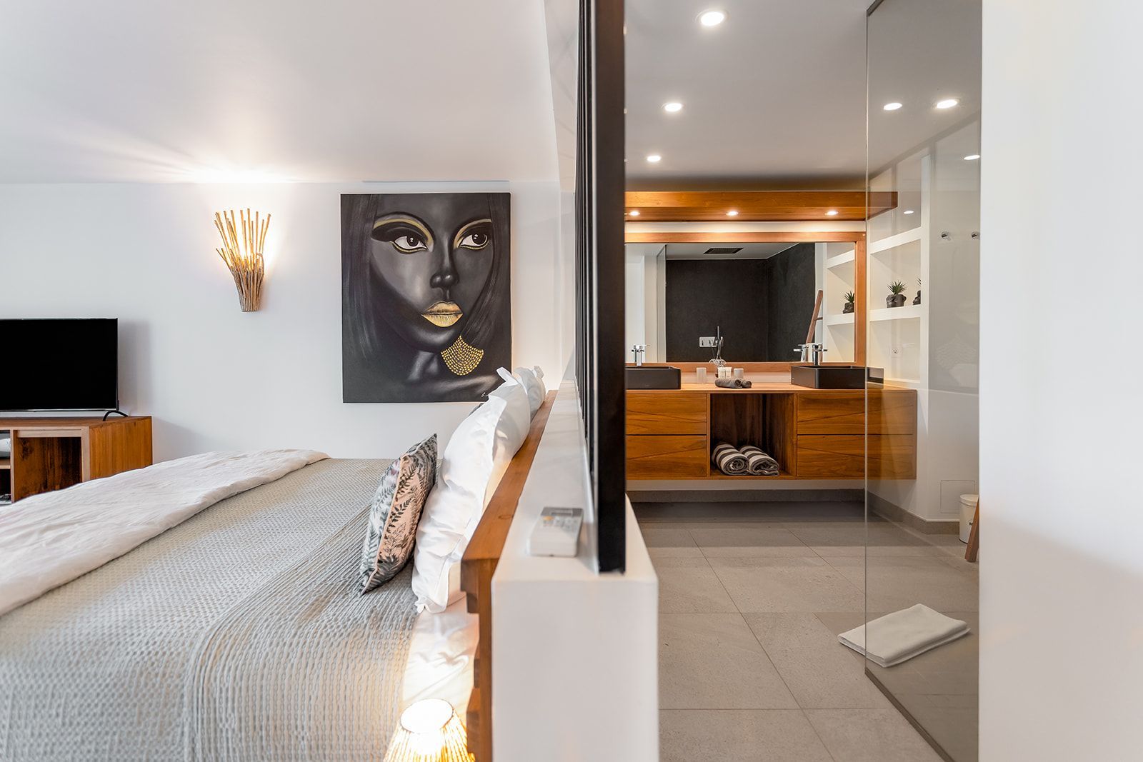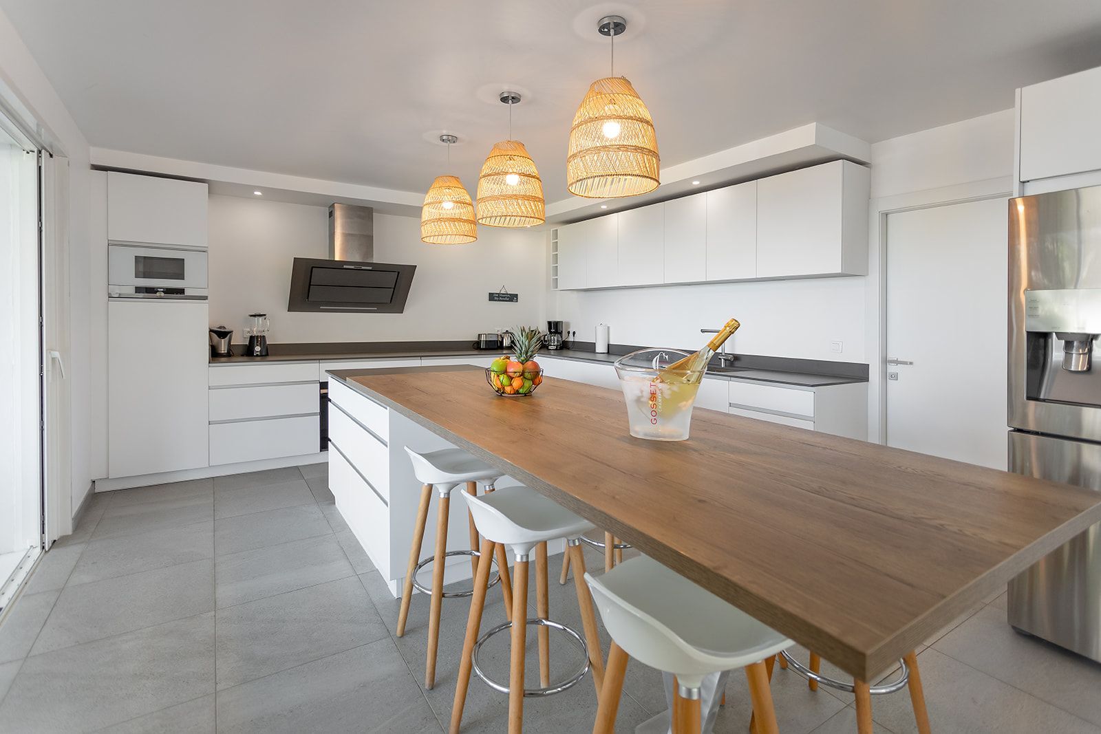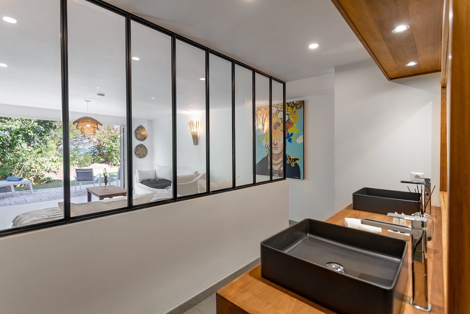 L'intérieur de la villa dévoile une décoration épurée et élégante, alliant harmonieusement modernité et charme caribéen. Les espaces de vie spacieux invitent à la détente, baignés par la lumière naturelle grâce aux larges baies vitrées offrant une vue époustouflante dès l'entrée dans la villa.