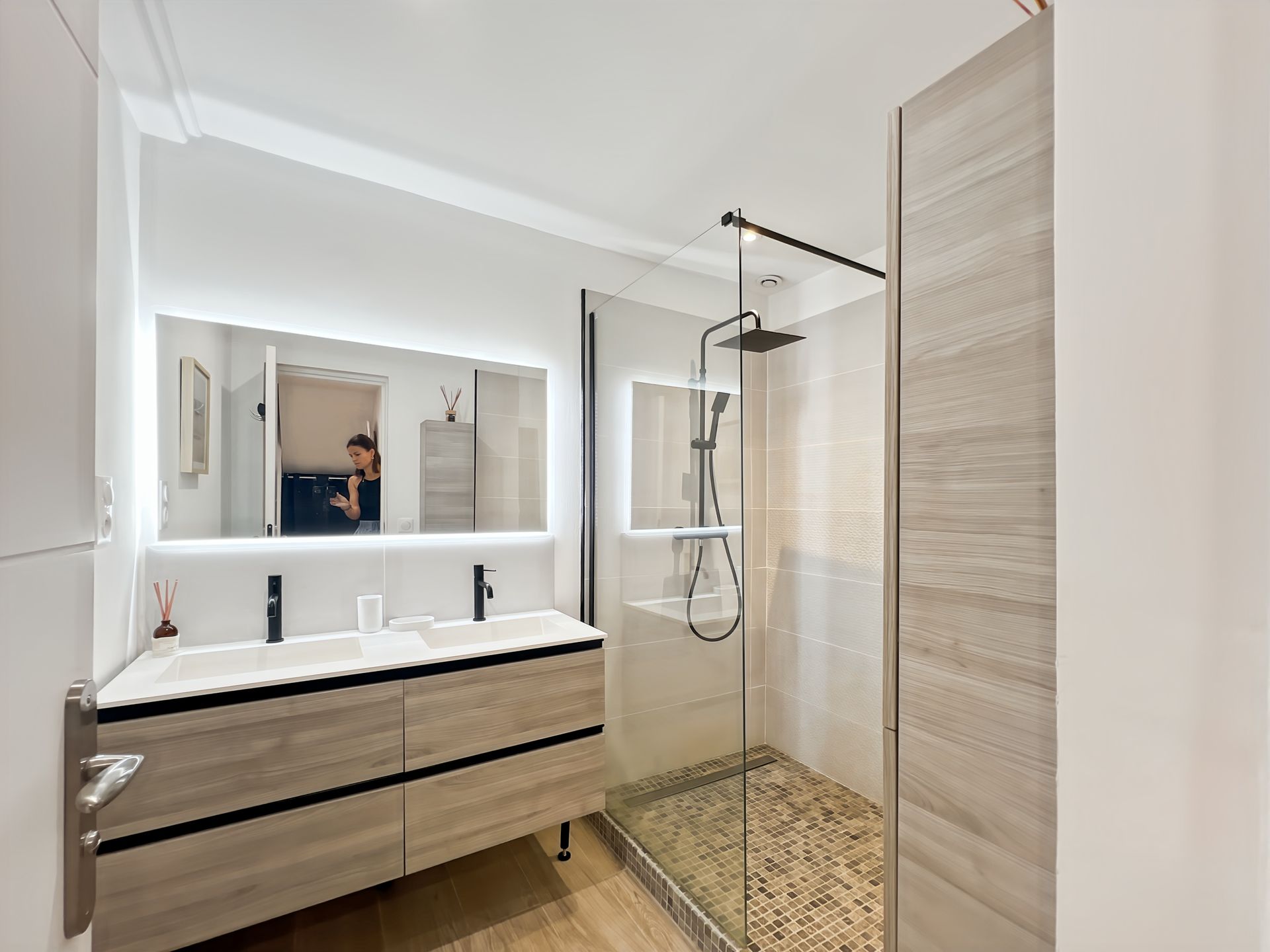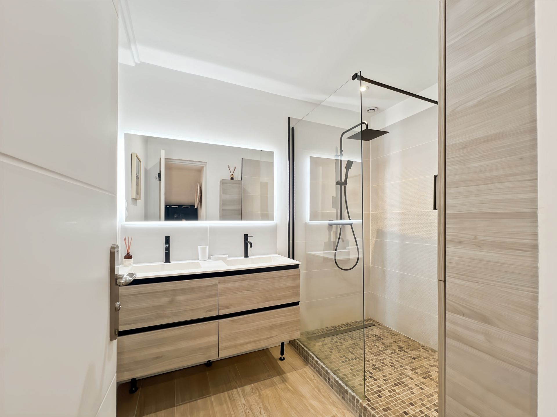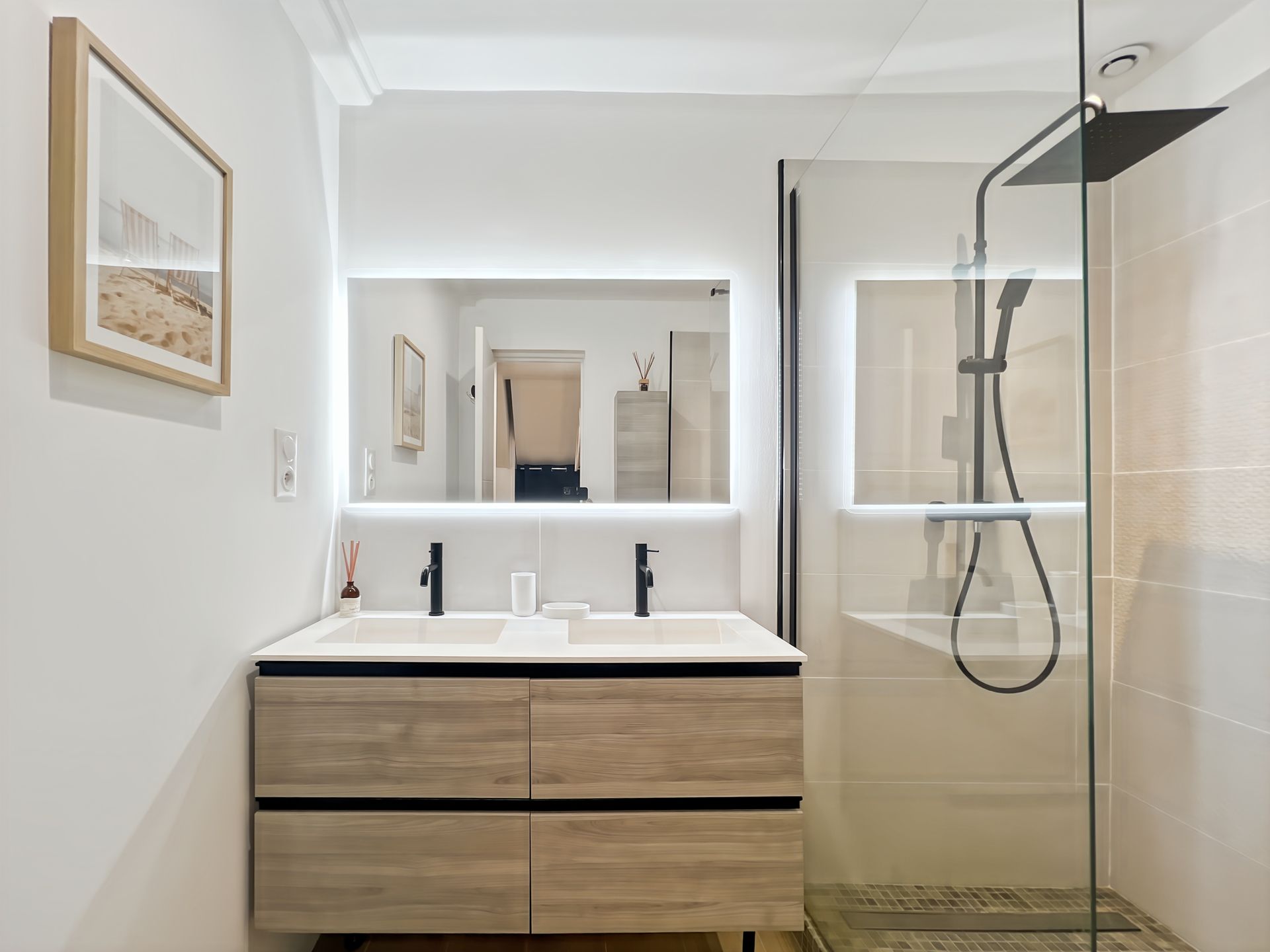 L’appartement dispose de deux chambres confortables, de deux salles de bain modernes, ainsi que d’un salon spacieux et convivial (pouvant accueillir 2 autres invités), baigné de lumière naturelle. L’ensemble a été aménagé avec goût, mettant en valeur une décoration soignée et des meubles de qualité, créant une atmosphère chaleureuse et raffinée.