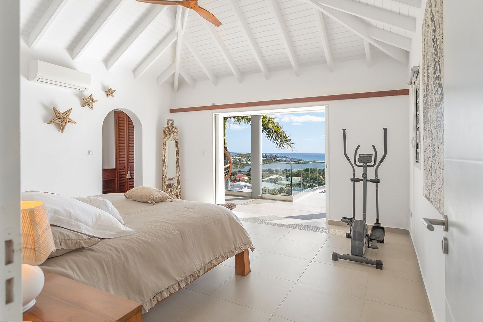 La Villa Venus est une superbe villa perchée sur les hauteurs du Mont Vernon à Saint Martin. Elle offre des espaces généreux et des volumes élégants, parfaitement conçus pour accueillir jusqu'à 8 personnes. La propriété dispose de 3 chambres climatisées, chacune dotée d'un lit king-size (180 x 200), d'un dressing et d'une salle de bain attenante avec douche. Les trois chambres sont situées au niveau principal et offrent une vue imprenable sur la mer. Pour les groupes de 8 personnes, un studio indépendant est inclus, offrant une intimité totale avec sa propre cuisine, une douche à l'italienne en marbre et une télévision, assurant un confort maximal.