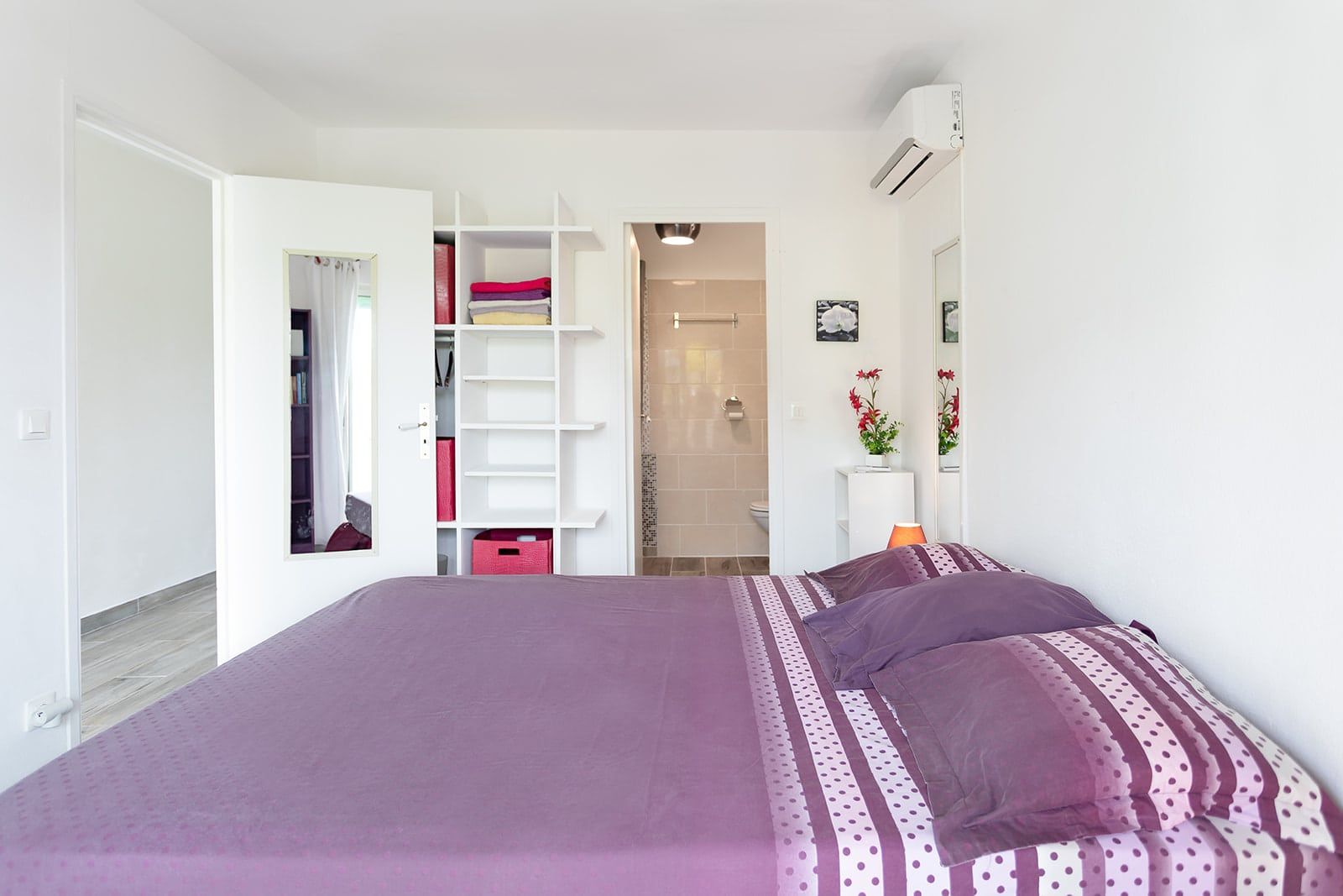 The apartment is fully air-conditionned, has TV, WiFi, washing machine. One