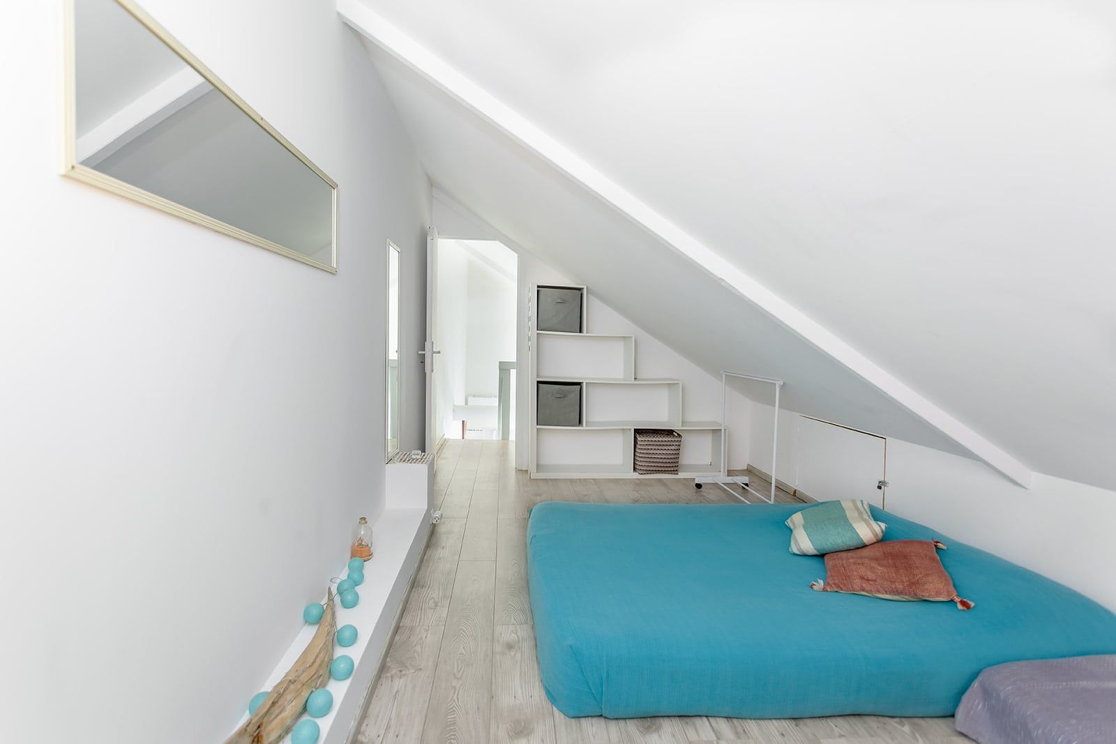 above the living room is only suitable for kids, it features a double mattress and a single mattress. (difficult access by a ladder - 1 toilet)