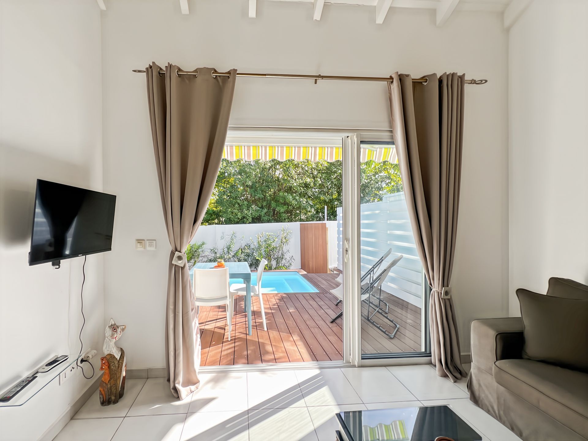 We absolutely loved our stay at Mango Orange! The apartment was spotless and had everything we needed for a relaxing vacation. The duplex bedroom was super cozy, and we enjoyed having our own private pool. The location is quiet but so close to Orient Bay. Highly recommended for couples looking for privacy!