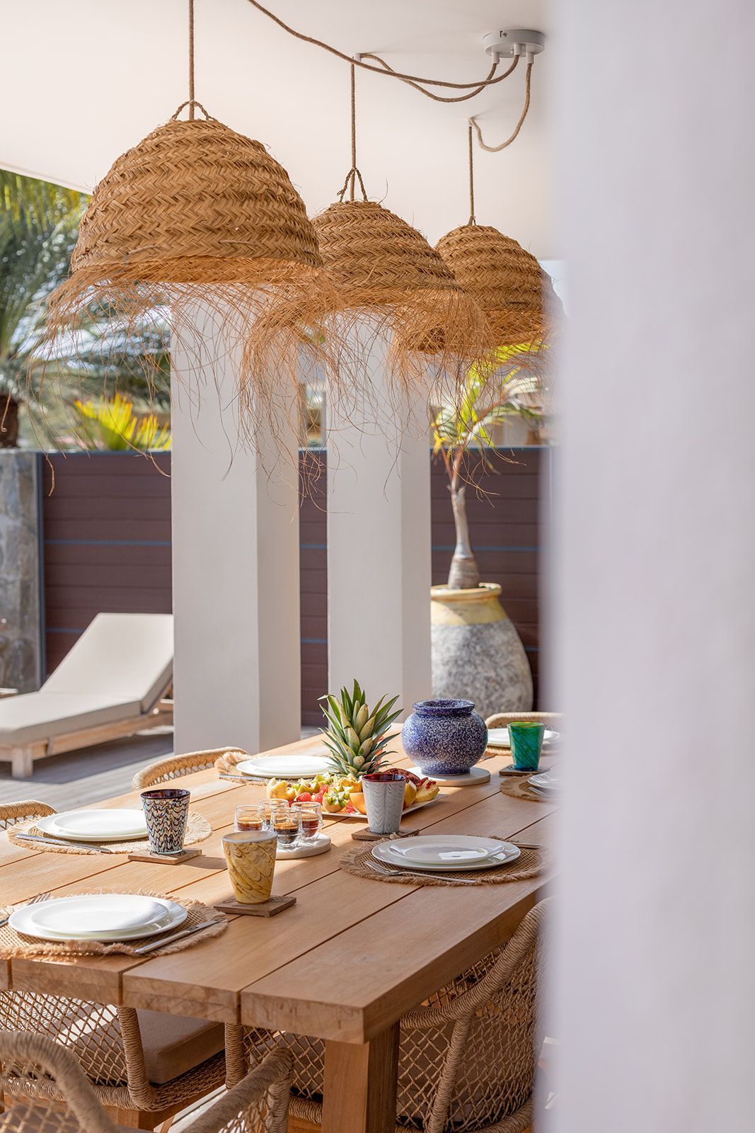 The expansive outdoor living space immediately caught my attention. The dining area is perfectly situated to take in the stunning surroundings, making every meal an experience to savor.