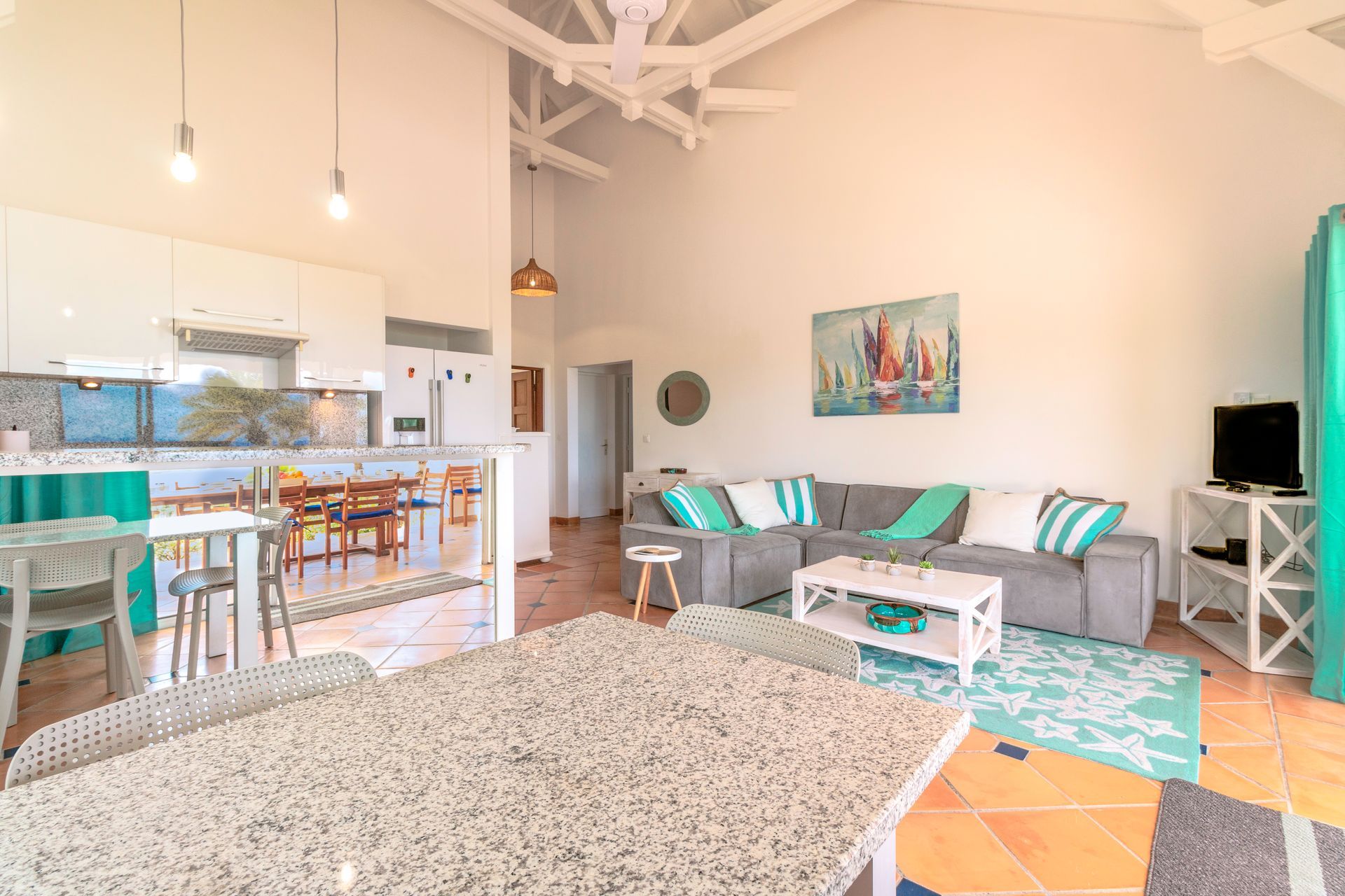 Villa Saphir is located in the secure park of Orient Bay with its beach restaurants, watersports, the "Village Square" with delicious restaurants open in the evening, a grocery store, a bakery... Everything you need for a perfect vacation!