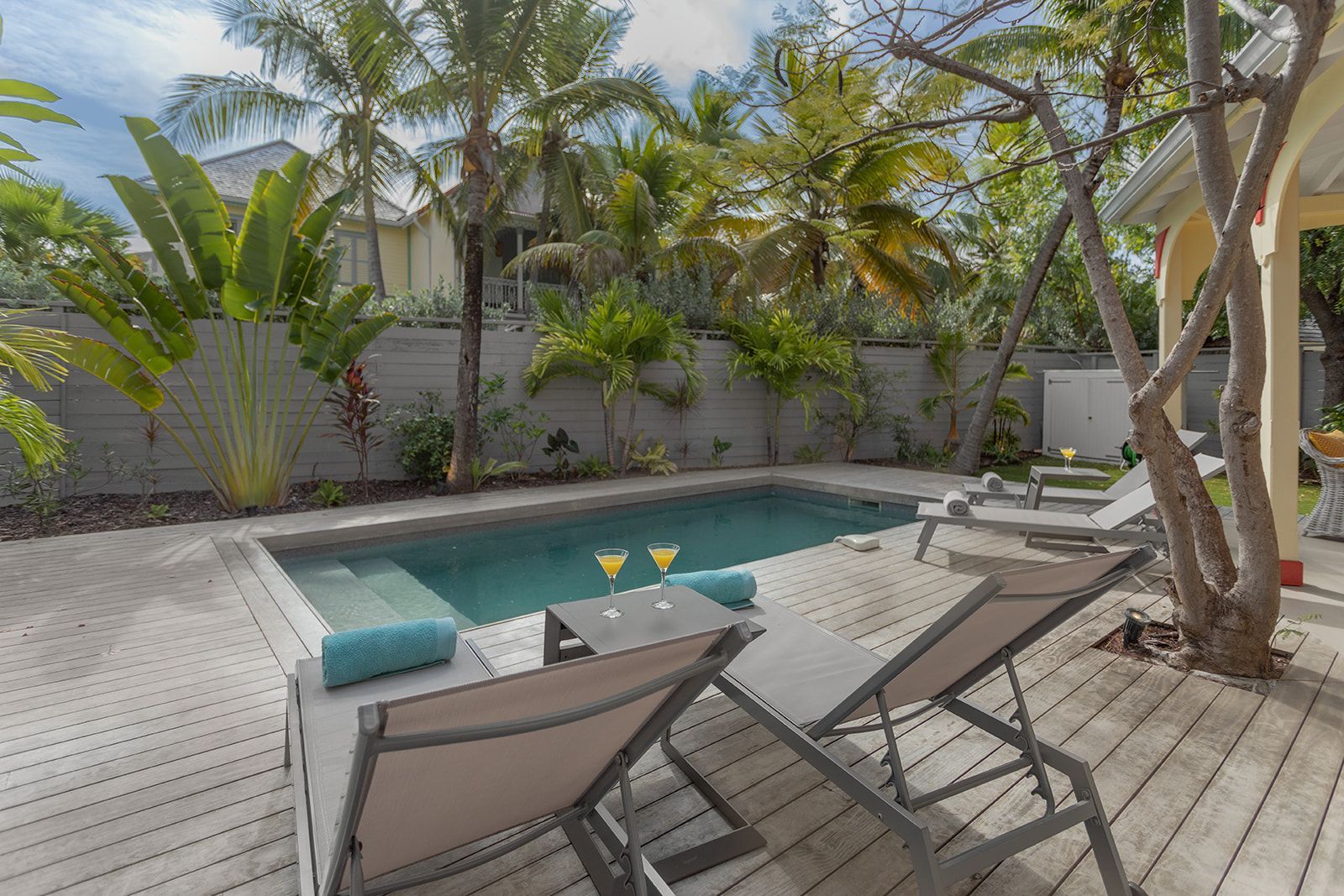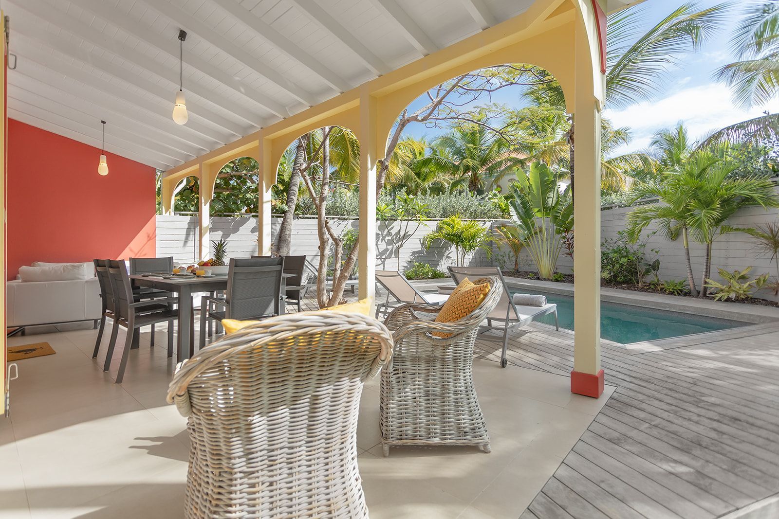 Step outside to your private pool surrounded by sun loungers, perfect for soaking up the Caribbean sunshine. The spacious terrace, with its dining and lounge areas, invites you to enjoy convivial meals and unforgettable moments with family or friends.