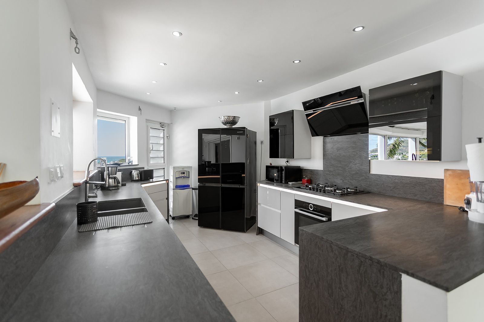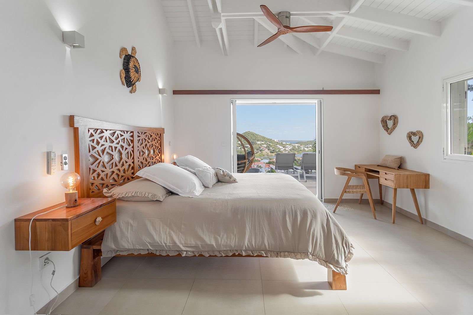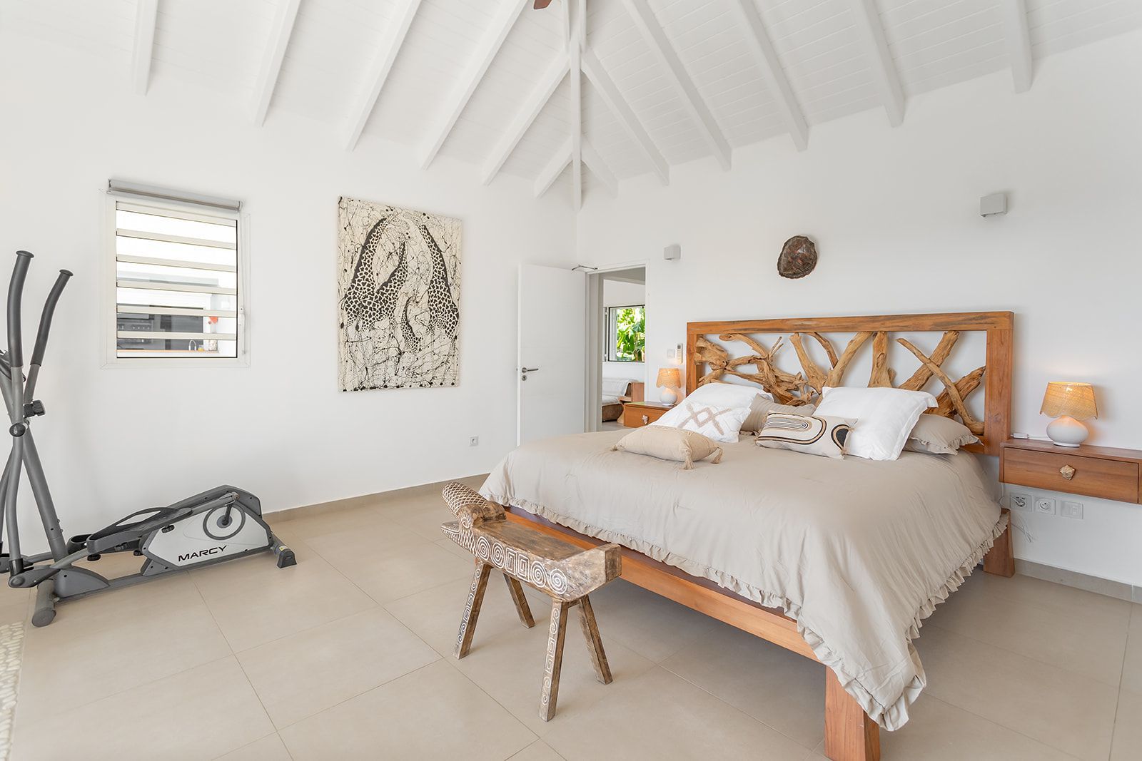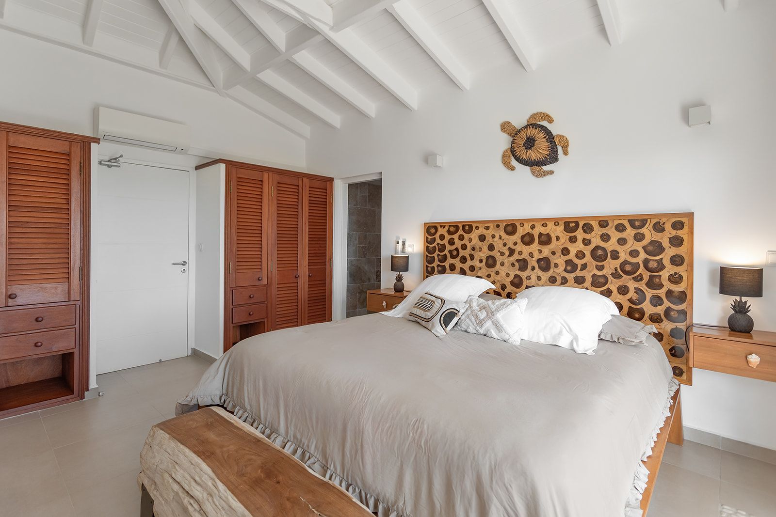 Villa Venus is a stunning villa, perched in the heights of Mont Vernon in Saint Martin. It offers generous spaces and elegant volumes, perfectly designed to accommodate up to 8 guests. The property features 3 air-conditioned bedrooms, each with a king-size bed (180 x 200), a dressing room, and an en-suite bathroom with a shower. All three bedrooms are located on the main level and boast breathtaking sea views. For groups of 8, an independent studio is included as a 4th bedroom, offering complete privacy with its own kitchen, a marble walk-in shower, and a TV, ensuring maximum comfort.
